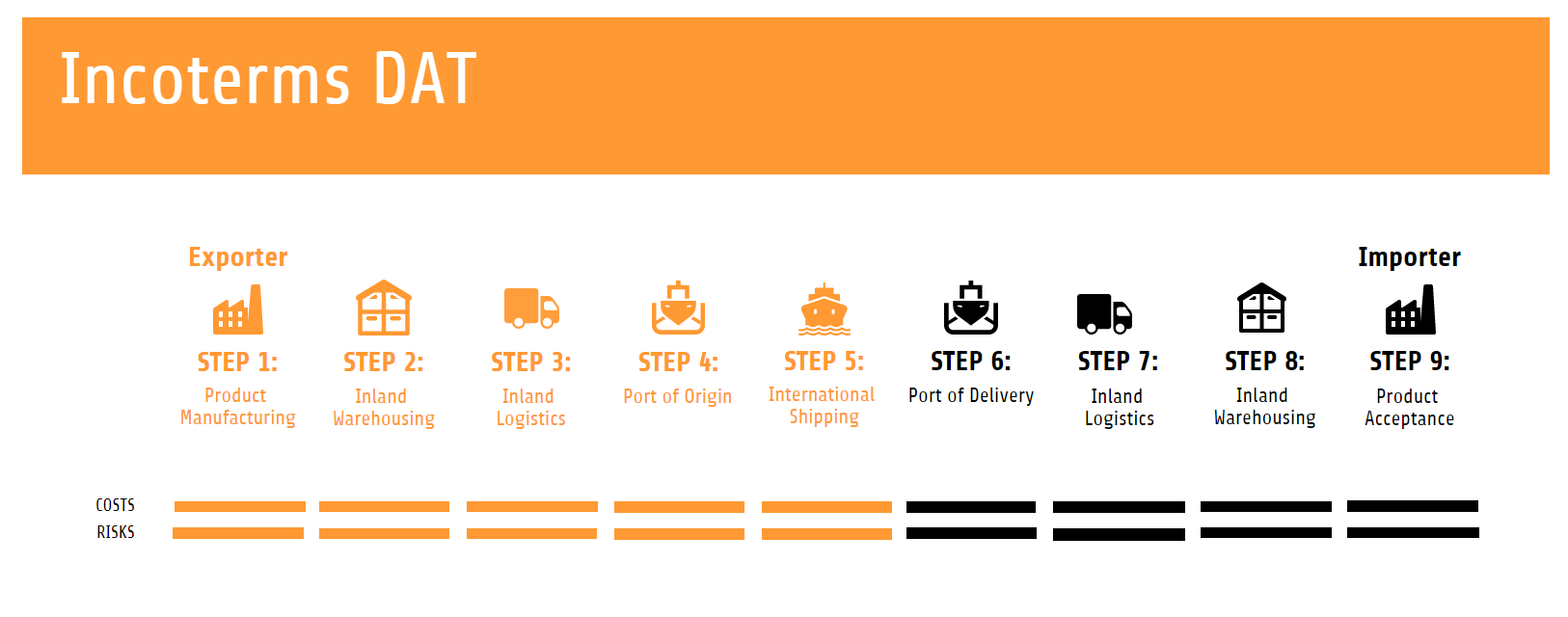 • There is a transfer of risks and liabilities from supplier to importer upon delivery at the port/terminal of destination.